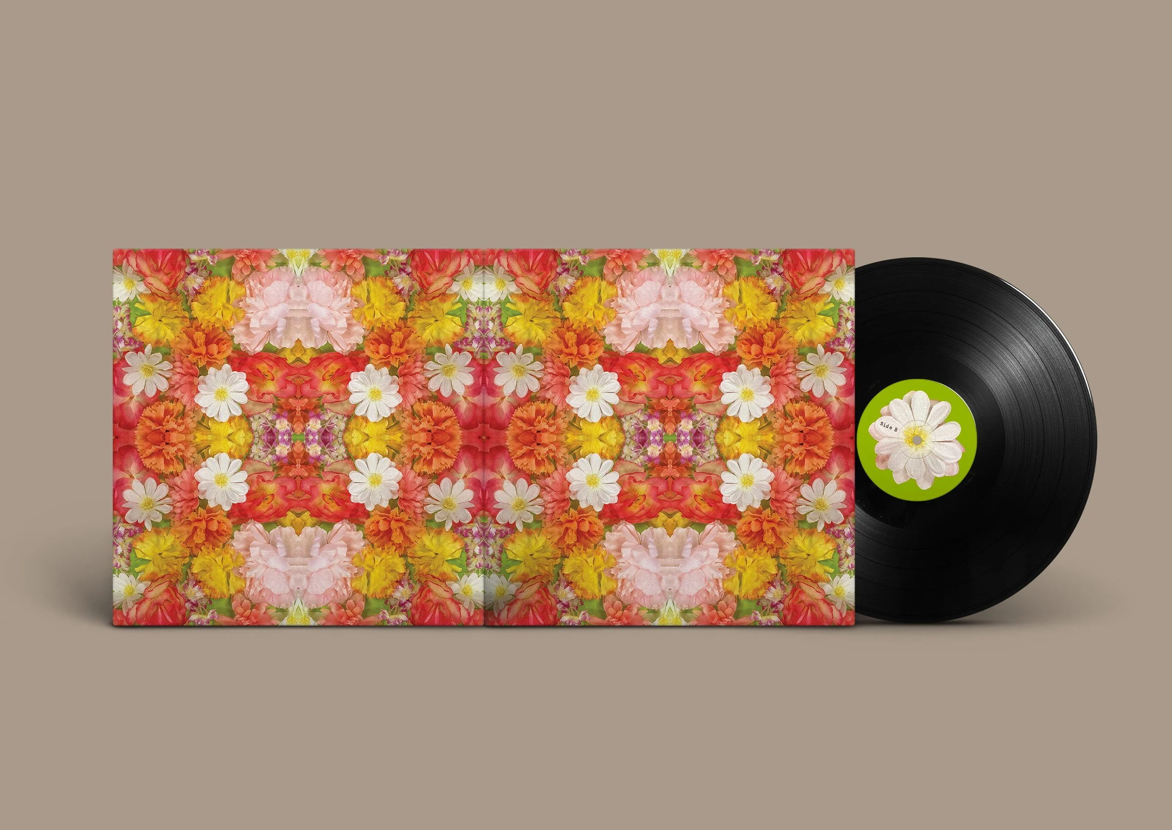 A vinyl album design exploring themes of vulnerability, self-love, and personal growth through a serene, nature-driven visual language. Inspired by the emotional evolution of SZA, the concept Bloom translates introspective R&B into a tactile, immersive aesthetic. The exterior uses organic materials—coffee grounds to form the artist’s name and distress the surface—evoking dirt and grass, while the interior reveals a vibrant, kaleidoscopic arrangement of artificial flowers. This contrast creates a narrative experience, where the act of opening the vinyl mirrors the process of growth, shifting from muted, grounded tones to a moment of visual “bloom.” Through texture, materiality, and composition, the design reflects quiet transformation and emotional depth.